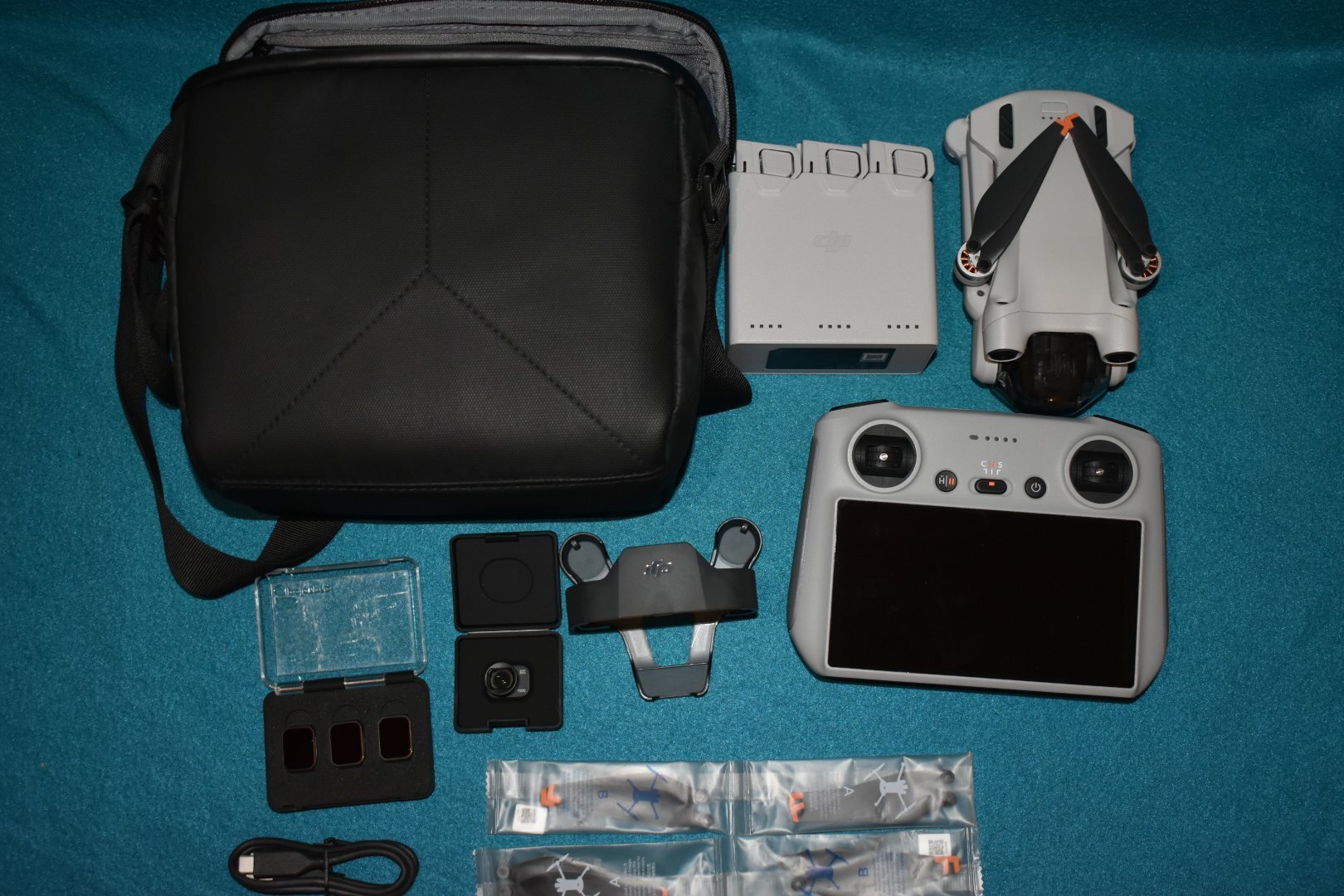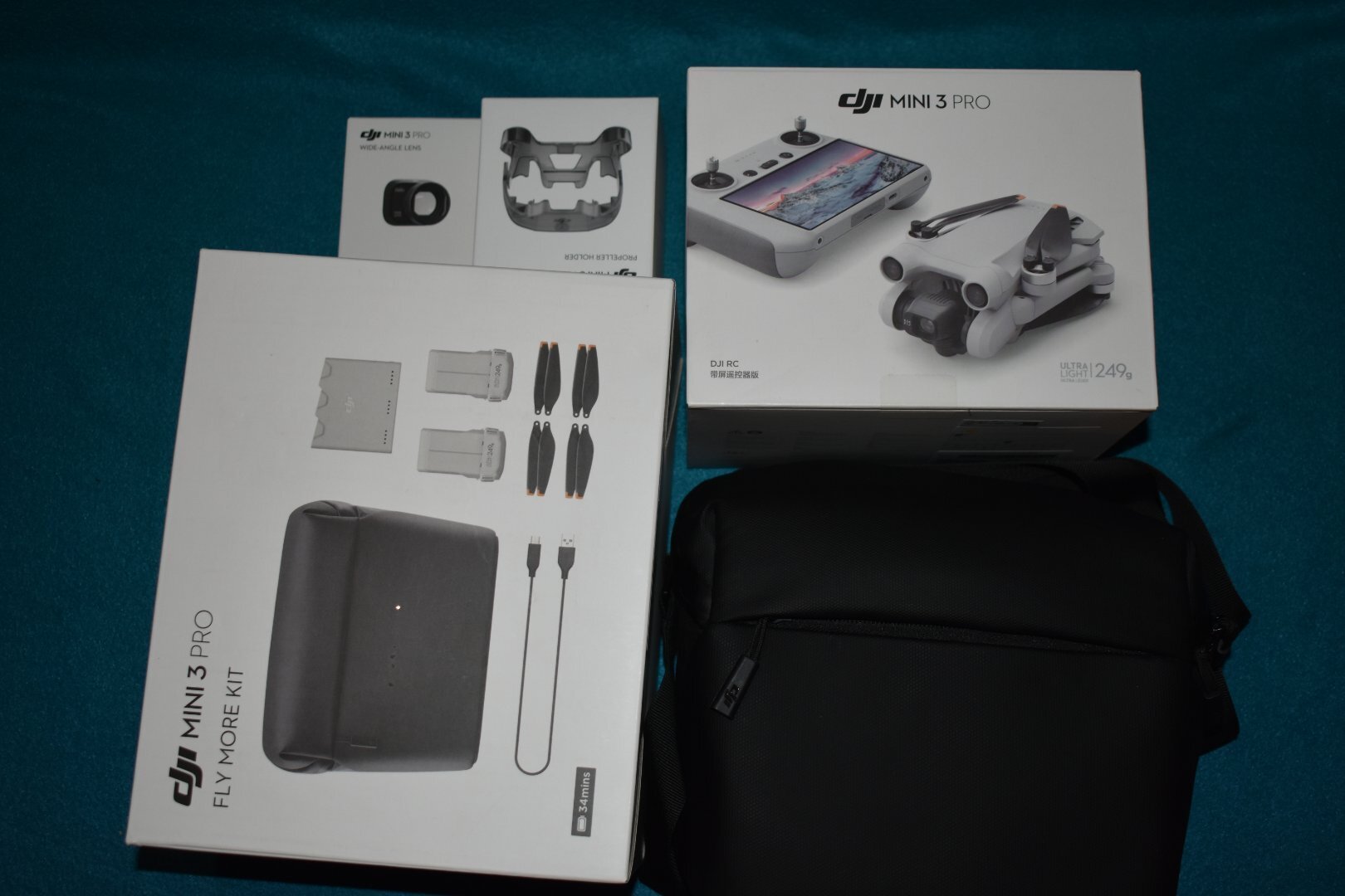 Πωλείται το DJI Mini 3 Pro μαζί με το Fly More Kit (περιέχει θήκη, εφεδρικούς έλικες, μπαταρίες και φορτιστή), το Propeller Holder, το Wide Angle Lens (όλα γνήσια στα κουτιά τους), και σετ ποιοτικών φίλτρων ND για επαγγελματικές αεροφωτογραφίες.