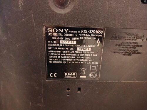 Τηλεόραση SONY KDL-32S5650 32' με ενσωματωμένο αποκωδικοποιητή και χειριστήριο ΟΧΙ SMART 50€