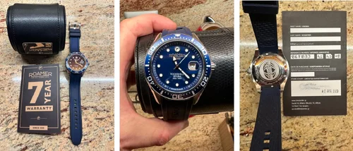 1. ROAMER Rockshell Mark III Scuba Blue Silicone Strap – 180€
