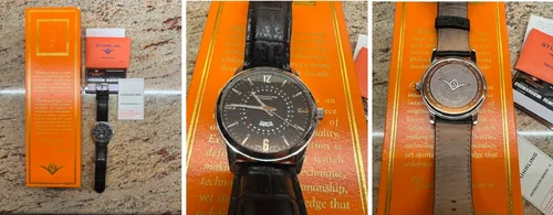 Σε άριστη κατάσταση (σαν καινούργιο). Ελάχιστα φορεμένο. Δεν είναι του στυλ μου. Με το κουτί του, το καρτελάκι του και το βιβλιαράκι του. Μοναδικό «ψεγάδι» (αν μπορεί κάποιος να το αποκαλέσει έτσι) το κάτω button του χρονογράφου πατιέται πιο δύσκολα απ' ότι το πάνω. Δουλεύει κανονικότατα.