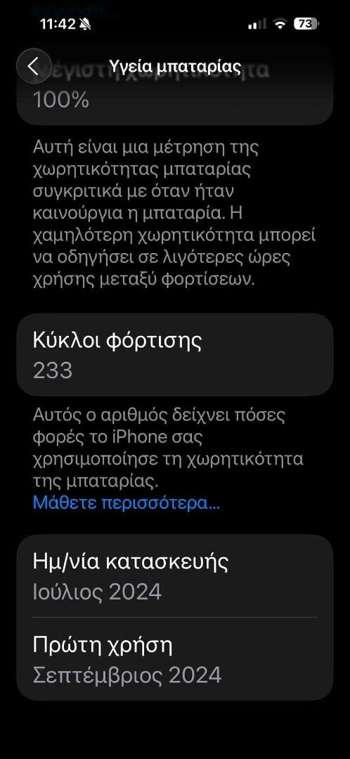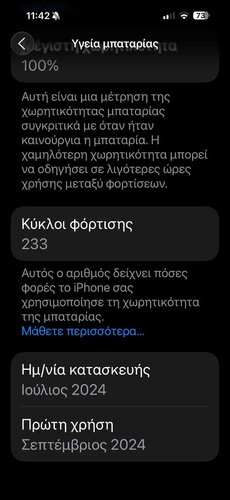 Το τηλέφωνο είναι σε τέλεια κατάσταση με ποιοτική προστασία σε οθόνη και κάμερες και δίνεται στο κουτί του με αχρησιμοποίητο καλώδιο φόρτισης .Έχει αγοραστεί Σεπτέμβριο 2024 με 234 κύκλους φόρτισης 100% υγεία μπαταρίας και γενικά πολύ προσεγμένη χρήση.Δωρο θήκή.