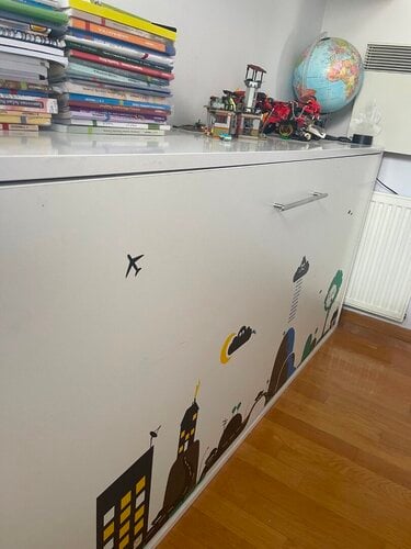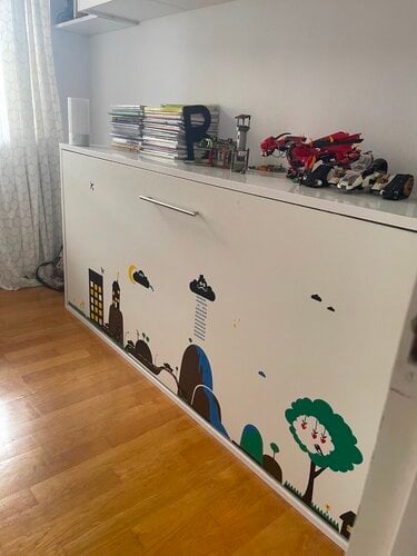 Πάνω στο κρεβάτι υπάρχουν αυτοκόλλητα, τα οποία μπορούν να αφαιρεθούν εύκολα σε περίπτωση που δεν σας αρέσουν.