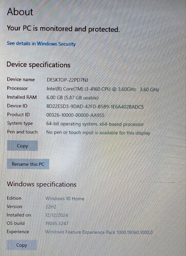 * CPU: Intel Core i3-4160 @ 3.60GHZ