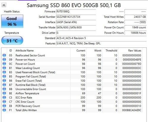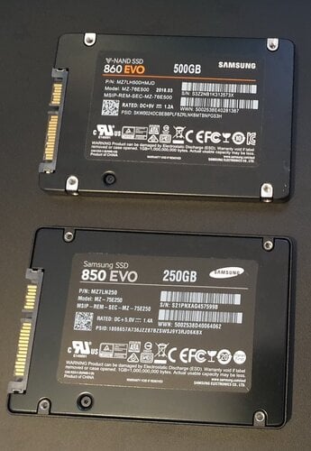 SSD Samsung 860 Evo 500GB και SSD Samsung 850 Evo 250GB οι οποίοι λειτουργούν μια χαρά.