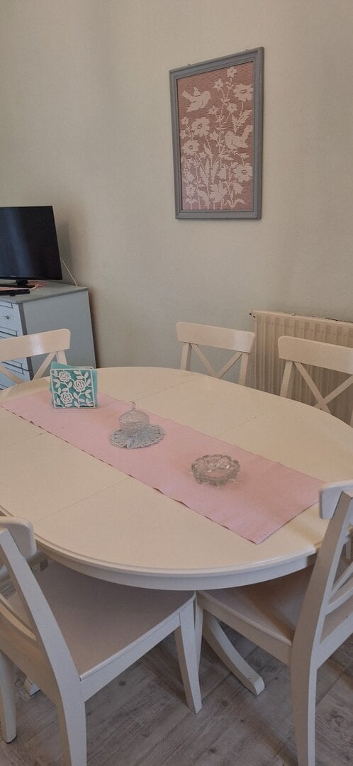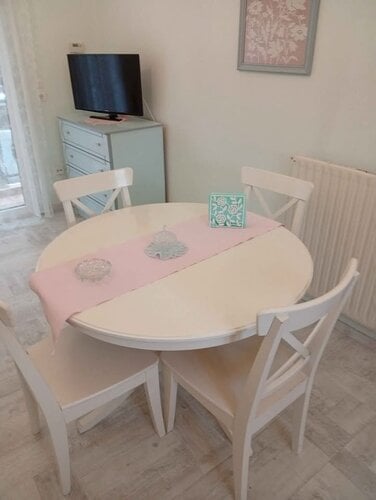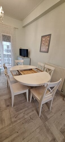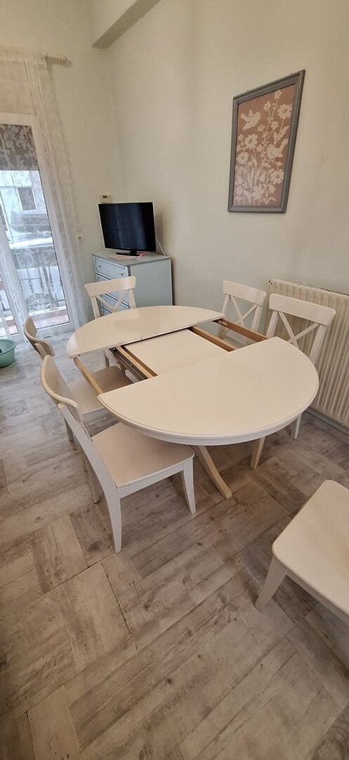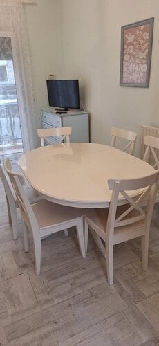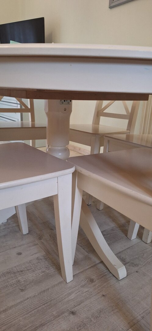 Επεκτεινόμενο τραπέζι ροτόντα ΙΚΕΑ Ingatorp με 6 καρέκλες Ingolf μεταχειρισμένο