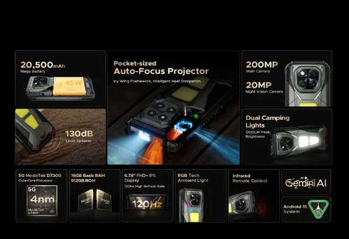 20,500mAh Mega Battery & 45W Fast Charging – Stay powered up with the massive 20,500mAh battery, and enjoy fast recharging with 45W fast charging for long-lasting use during outdoor and daily activities.