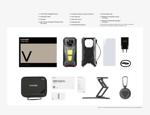 DOOGEE V Max Play VIP EDITION 480P HD Projector Rugged Phone 6.78'' 512GB 200MP Dual Camping lights.
