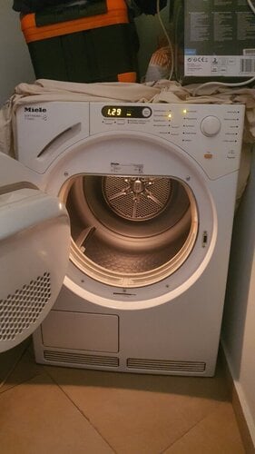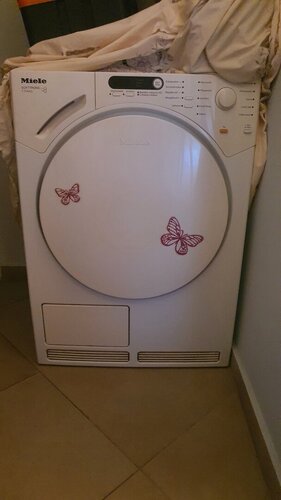Στεγνωτηριο miele Τ 7744 C 6-7 κιλα χωρητικοτητα ογκος καδου 111 λιτρα κλασης β ελαχιστα δουλεμενο με επιλογη βαθμιδων στεγνωματος για ελαφρως υγρα για σιδερο μετρια στεγνα και πολυ στεγνα με καταναλωσεις συμφωνα με φορτιο και εξειδικευμενα προγραμματα για βαμβακερα ευαισθητα συνθετικα μαλλινα αυτοματο μπουφαν ρουχα sport. Εχει δοχειο συγκεντρωσης νερου το οποιο νερο ειναι ιδανικο για σιδερο λογω απουσιας αλατων διαφορετικα μπορει να συνδεθει κατευθειαν σε αποχετευση. Παραλαβή μόνο από τον χώρο μου. Πειραιάς Καμινια.... Τιμή συζητήσιμη