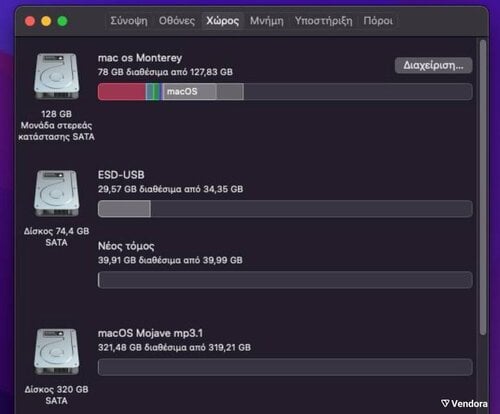Αποθήκευση: SSD 128 GB (macOS Monterey) + HDD 500 GB (Windows 11) – έτοιμο για dual boot