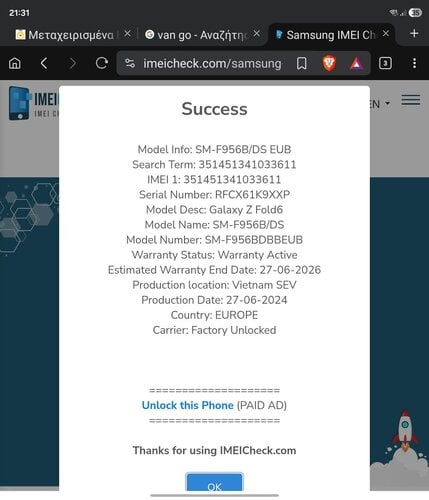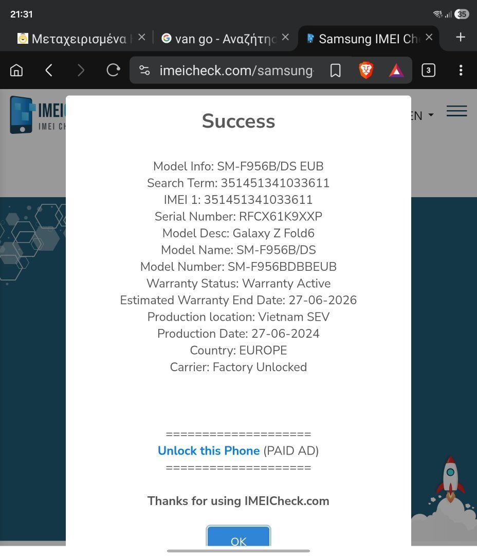 Αγορά από Αγγλία τον Σεπτέμβριο του '24.