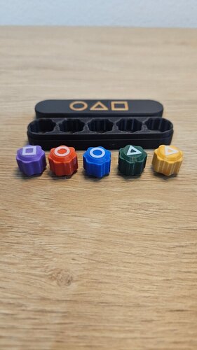 🔺 Πωλείται συλλεκτικό, τρισδιάστατα εκτυπωμένο σετ Gongi εμπνευσμένο από τη δημοφιλή σειρά Squid Game! Το παιχνίδι Gonggi είναι ένα παραδοσιακό κορεατικό παιχνίδι δεξιοτεχνίας, όπου οι παίκτες πετούν και πιάνουν μικρά αντικείμενα με συγκεκριμένους κανόνες.
