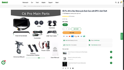 C6 Pro All-in-One Motorcycle Dash Cam with GPS & Anti-Theft