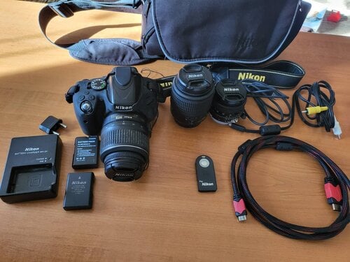 Δίδεται η φωτογραφική μηχανή του τίτλου λόγω μη χρήσης. Με 3 φακούς, με πειραγμένο λογισμικό για να δουλεύει και με ΟΕΜ μπαταρίες και χωρίς περιορισμό στο χρόνο εγγραφής βίντεο, 2 μπαταρίες, φορτιστή, τσάντα μεταφοράς Nikon, χειριστήριο γι απομακρυσμένες λήψεις, καλώδιο υπολογιστή και καλώδιο HDMI.