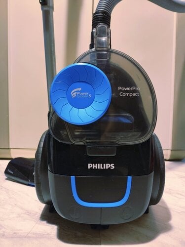 Πωλείται η εικονιζόμενη ηλεκτρική σκούπα Philips Powerpro Compact μαζί με το κουτί και όλα της τα εξαρτήματα. Δουλεύει πραγματικά άριστα και εξωτερικά είναι σε πάρα πολύ καλή κατάσταση. Είναι χωρίς σακούλα, με τεχνολογία PowerCyclone 5 και αντιαλλεργικά φίλτρα. Δίνεται μαζί με δύο καθαρισμένα σετ φίλτρων, το παλιό σετ είναι για να χρησιμοποιείται ως εφεδρικό ενόσω στεγνώνουν τα τωρινά. Είναι καλό να πλέονται κάθε 40 ημέρες περίπου. Το πίσω φιλτράκι δε χρειάζεται καθόλου πλύσιμο, μόνο το διπλό που εφάπτεται στον κάδο. Συνίσταται να αντικαθίστανται όλα πλήρως μια φορά το χρόνο (υπάρχουν ανταλλακτικά kit τόσο αυθεντικά όσο και μη, οικονομικά).