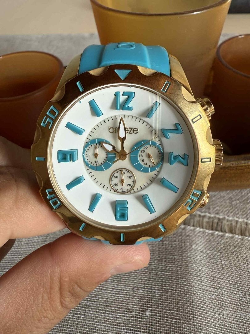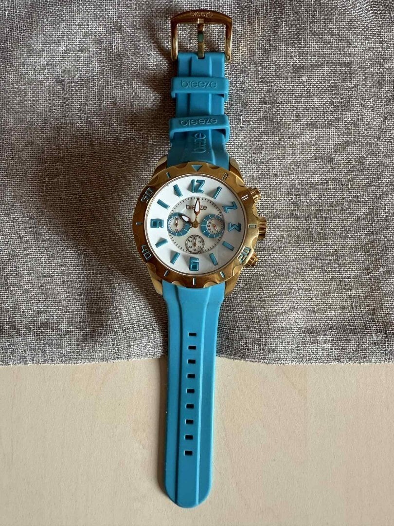 Breeze Γυναικείο Ρολόι 47mm Χρονογράφος Μπαταρίας με Μπλε Καουτσούκ Λουράκι