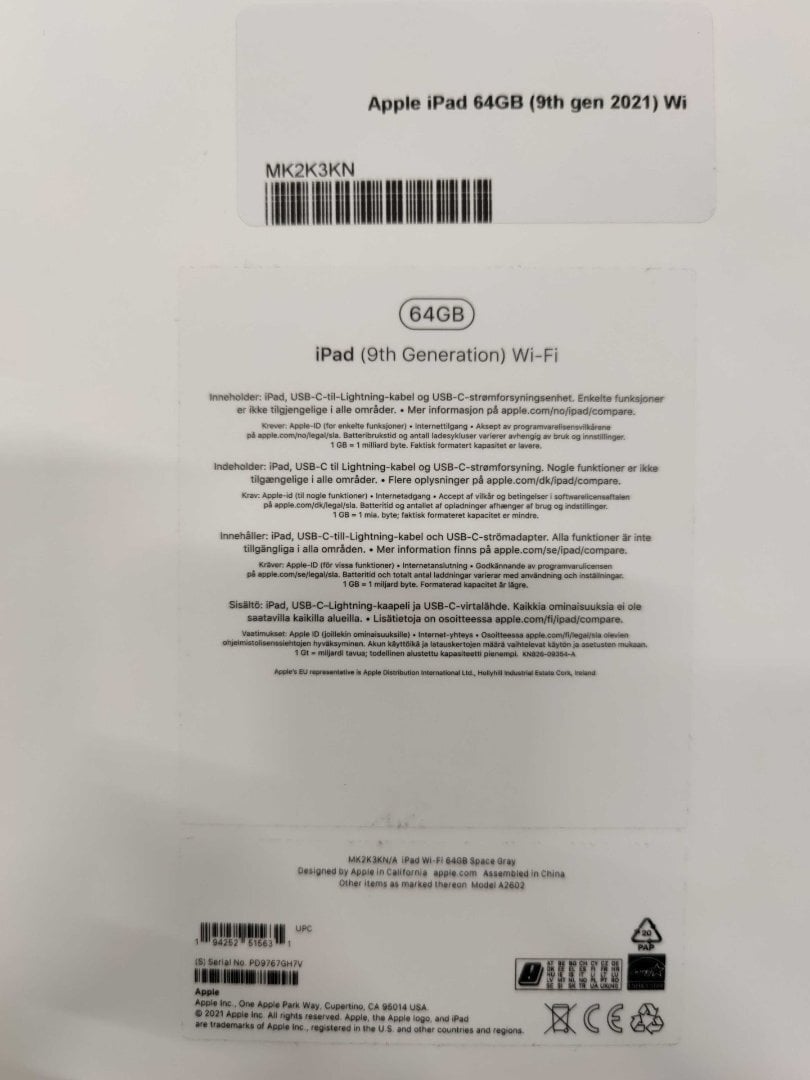 Πωλείται εντελώς σφραγισμένο Apple iPad 9th Gen (μοντέλο A2602 – MK2K3RKA), καινούργιο, αχρησιμοποίητο, με εγγύηση 2 ετών από την επίσημη ελληνική αντιπροσωπεία Apple και απόδειξη αγοράς μεγάλης αλυσίδας καταστημάτων (ΠΡΟΣΟΧΗ ΔΕΝ ΕΙΝΑΙ ΟΠΩΣ ΛΕΝΕ ΚΑΠΟΙΟΙ “παράλληλη εισαγωγή” ή “τιμολόγιο” ή "από δώρο χωρίς απόδειξη, εγγύηση με imei" και άλλα τέτοια παραμύθια ).