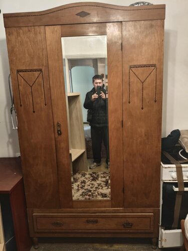 Ντουλάπα με καθρέφτη: Κλασικός σχεδιασμός, διακοσμητικά σκαλίσματα, κάτω συρτάρι. Καθρέφτης σε κεντρικό πάνελ, ιδανική για υπνοδωμάτιο ή dressing corner.