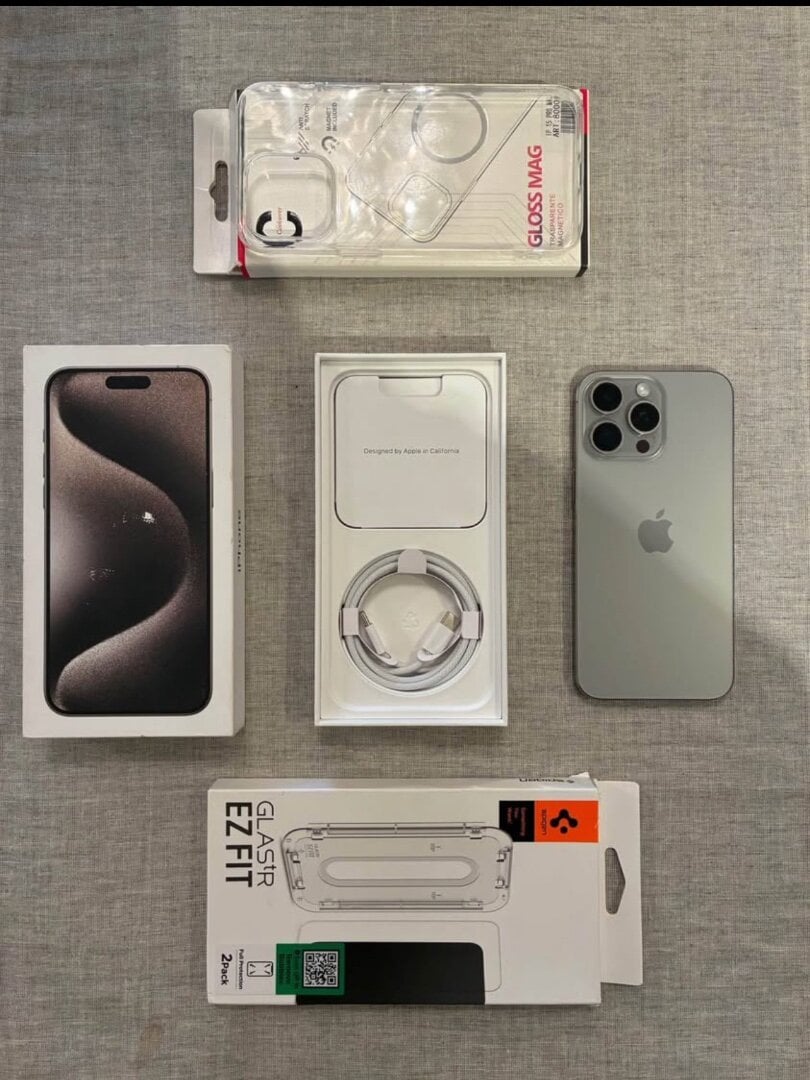 iPhone 15 Pro Max Natural Titanium 256Gb Ελληνικό σαν καινούργιο, σφραγισμένα παρελκόμενα & επώνυμα αξεσουάρ.