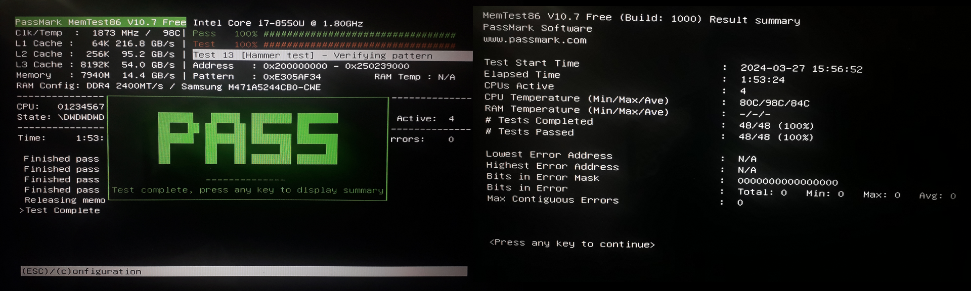 Έχουν περάσει επιτυχώς το Passmark Memtest86 με 4 passes και με 48 τεστ δίχως πρόβλημα!
