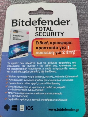 To «Bitdefender Total Security Ειδική Έκδοση» είναι ένα ολοκληρωμένο προϊόν που καλύπτει όλες τις ανάγκες ασφαλείας, σε προσωπικό και επαγγελματικό επίπεδο, αφού περιλαμβάνει προστασία πολλαπλών λειτουργικών συστημάτων -άρα και συσκευών. Το πακέτο περιλαμβάνει 1 ολοκληρωμένη άδεια για 2 έτη.