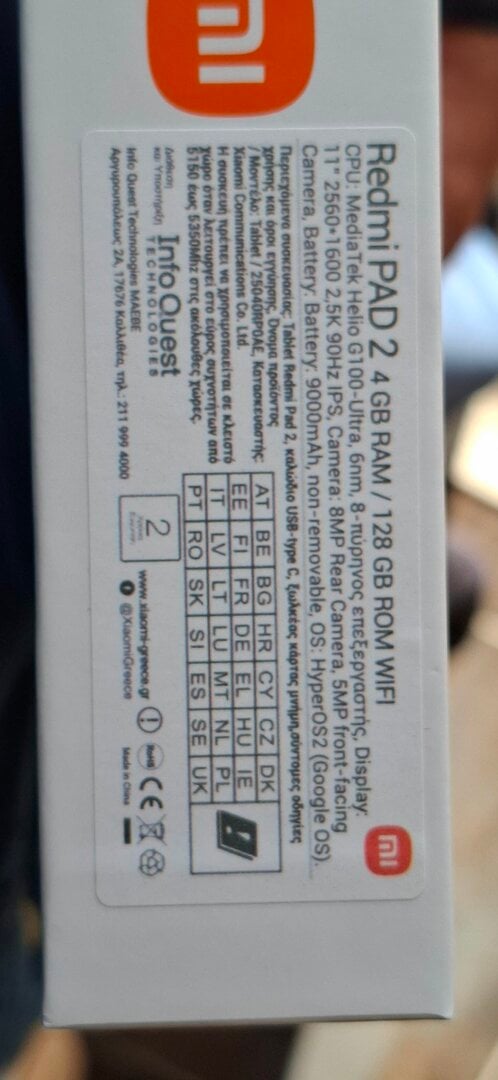 Πωλείται σφραγισμένο στο κουτί του Tablet Redmi Pad 2 (Αγορασμενο απο ελληνικό κατάστημα με εγγύηση 2 χρόνια απο την επίσημη ελληνική αντιπροσωπεία infoquest)
