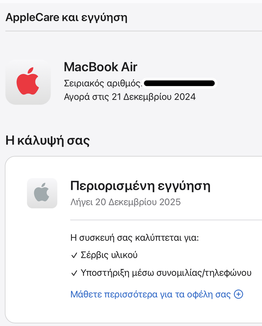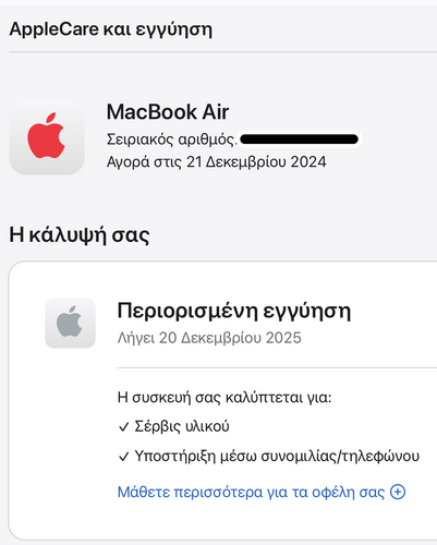 αγορασμένο από γνωστή ελληνική αλυσίδα Apple Premium Reseller με απόδειξη λιανικής που δίνει εγγύηση μέχρι Δεκέμβριο 2026!