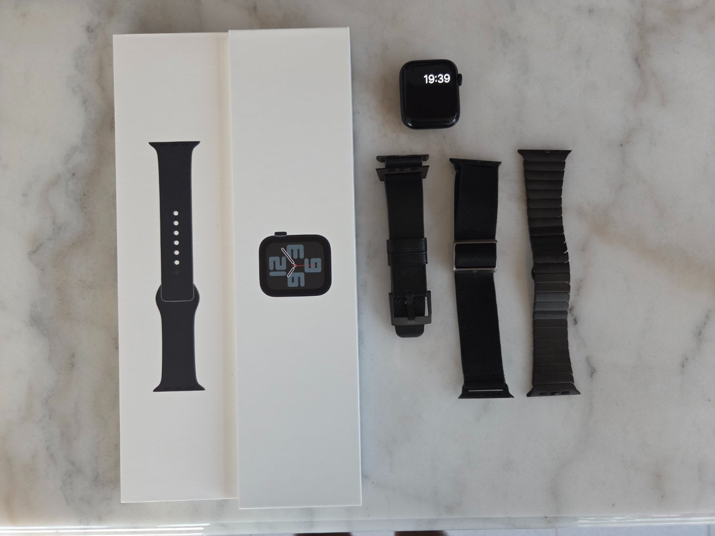 Αγοράστηκε τον 09/23 από κατάστημα Γερμανός και δίνεται στο κουτί του με έξτρα 3 λουράκια (1 δερματίνι μαύρο, 1 υφασμάτινο Spigen κι ένα μεταλλικό μαύρο Tech Protect).