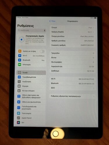 Apple IPad 8 32GB Wifi 2020 IOS 18.1.1