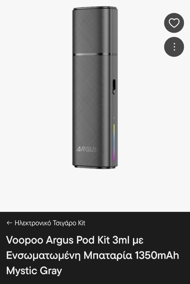 Voopoo argus pod kit 3 ml σε μαυρο χρωμα