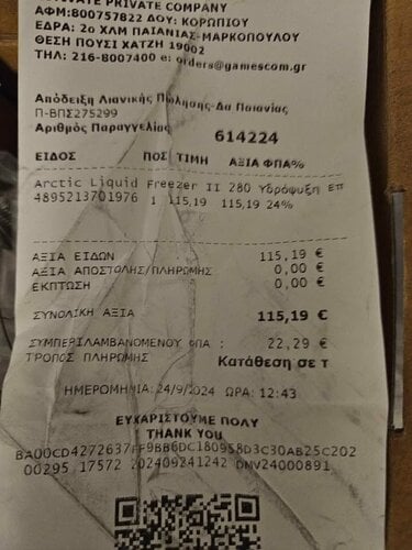 Αγορασμένη απο Gamescom στα 115€, πωλείται καθώς δεν χρησιμοποιήθηκε λόγω μεγέθους και δεν μπορεί να επιστραφεί λόγω πέρας του15νθημέρου απο την αγορά. Είναι τελευταίο revision. Περιέχει και το mount για LGA1700. Κωδικός προϊόντος ACFRE00066B. Πληροφορίες προϊόντος : https://www.arctic.de/en/Liquid-Freezer-II-280/ACFRE00066B Στο κουτί της με την απόδειξη αγοράς και την εγγύηση. Ανοίχτηκε μόνο για τις φωτογραφιες της αγγελίας. Περιοχή Καλλιθέα.