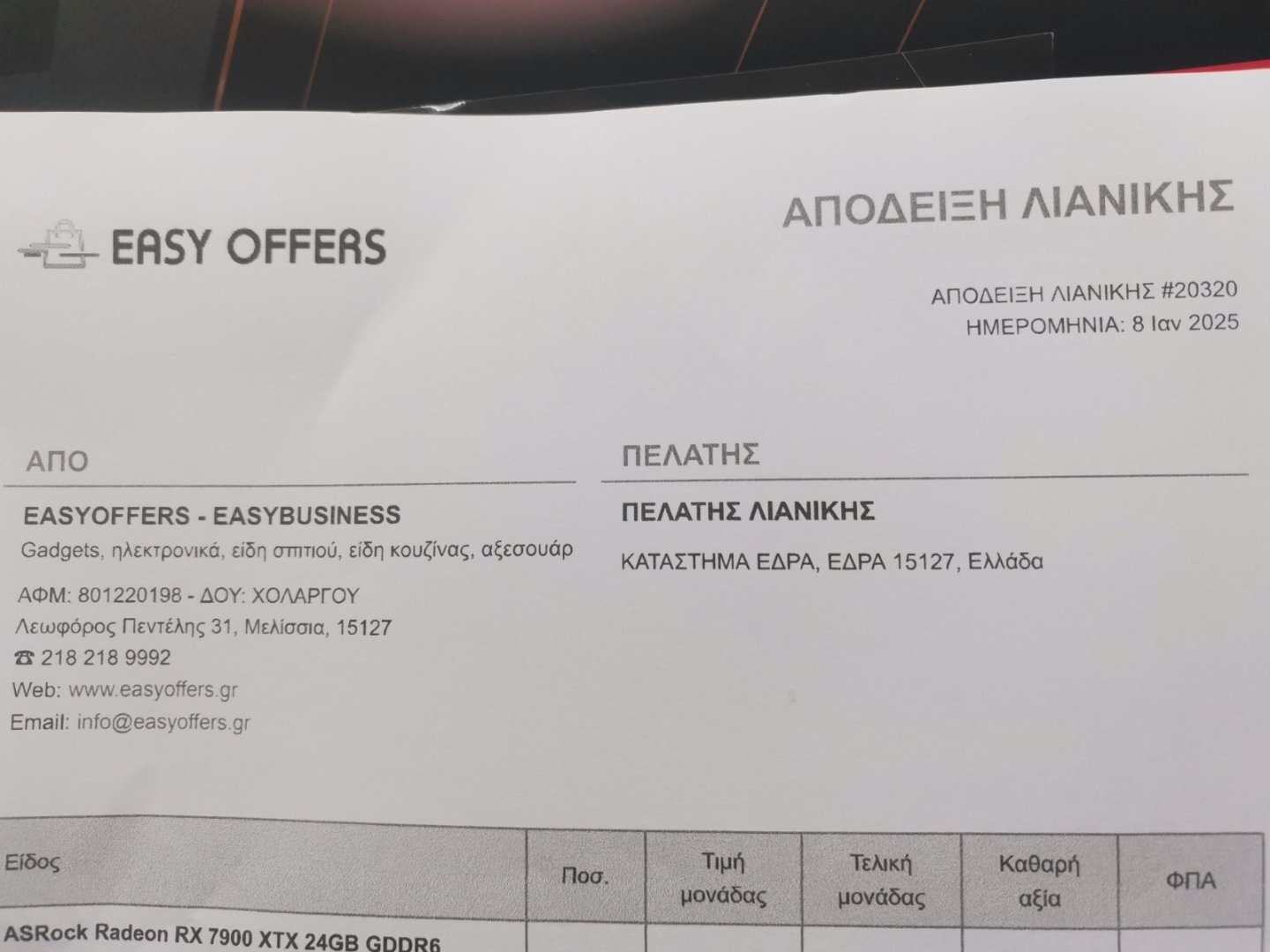Πωλείται Rx 7900xtx 24GB Taichi OC με εγγύηση, άψογη!!