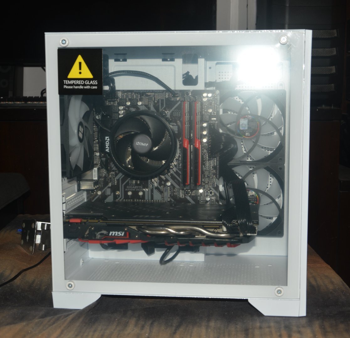 -Fans: Καινούργιοι 3x A-RGB Thermalright PWM 4pin, αλλά δεν τους έχω συνδέσει, γιατί δεν ξέρω πως. Είναι daisy chain το καλώδιο για το A-RGB, και βγαίνουν τελικά σε ένα φις, αλλά μου φαίνεται ότι δεν ταιριάζει στη μητρική. Σαν ανεμιστήρες δουλεύουν κανονικά, αλλά δεν ανάβουν.