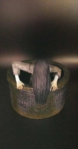 -Sadako από την ταινία The Ring. Βάψιμο με λεπτομέρειες στα δάχτυλα και λευκό/μπλέ δέρμα για ghostly effect. Ύψος 10cm και μήκος 10cm. Τιμή: 25€