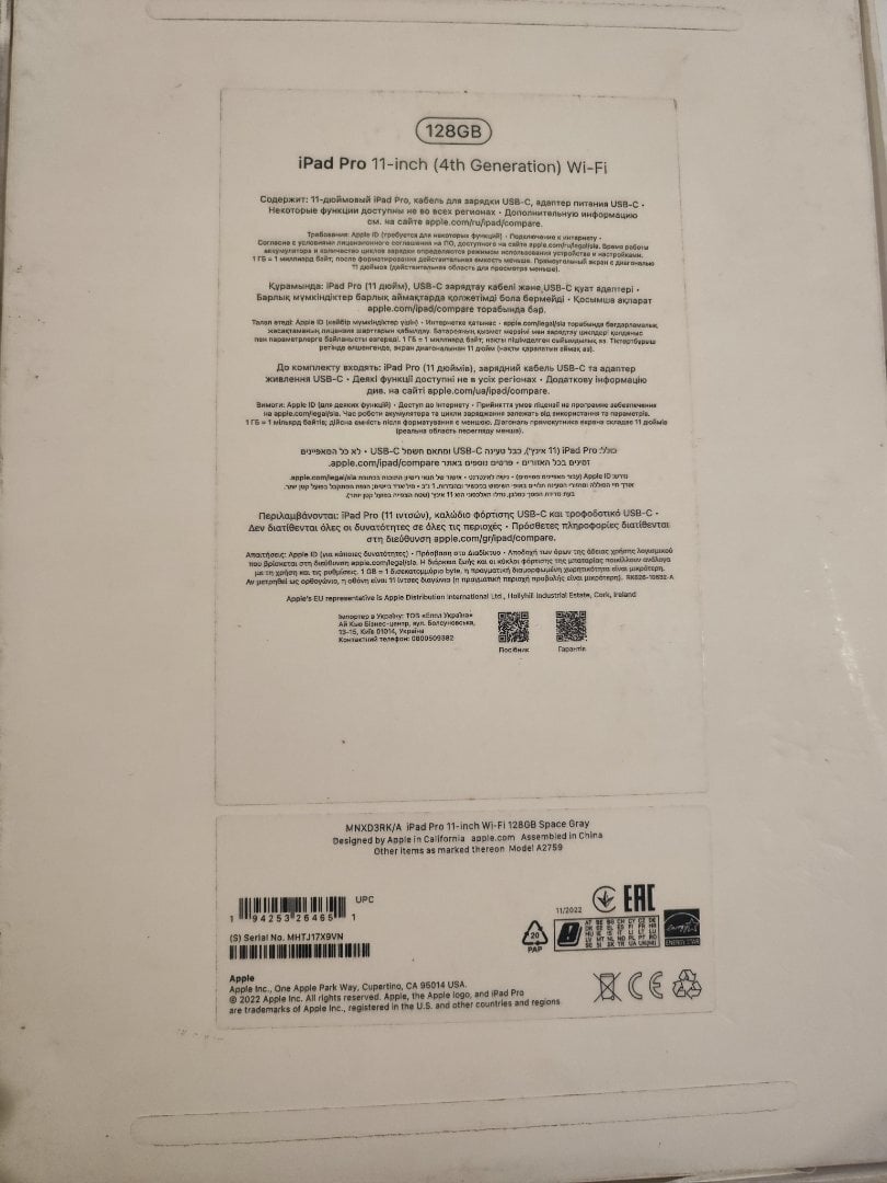 iPad Pro 11″ (2022 – M2 – 128 GB Wi-Fi Space Gray) | Άψογο 95 % μπαταρία | Με κουτί & φορτιστή
