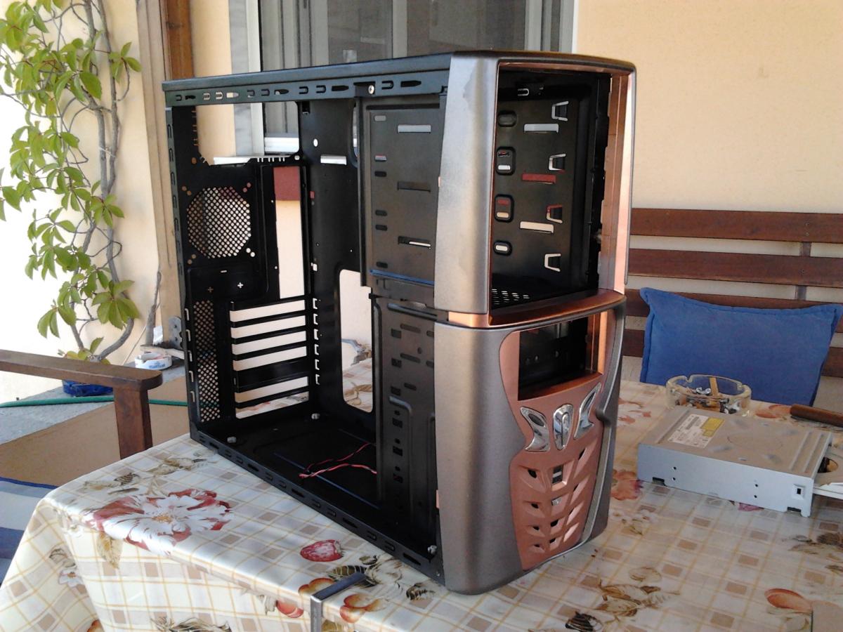 stm00192 Δημοσ. 16 Αυγούστου 2012 Δημοσ. 16 Αυγούστου 2012 Καλοκαιρακι λοιπον, αρκετος ελευθερος εδω στας Χαλκιδικάς, ειπα να πιασω στα χερακια μου το 10ετιας μεν , αξιολογο δε κουτι του pc 3 που εκτελει χρέη ιντερνετοπισου στο εξωχικό..... Αν και πολυ παλιο, προσφέρει καποιο βασικό cable managment και ανετους χωρους.. οποτε λοιπον μια ανακαινιση ήταν οτι έπρεπε ... ειδικα μετα απο 10 χρόνια μετακομισεων, χτυπηματων , γρατζουνιων και αλλων κακουχιων.... Ξεκίνησε με το να φιλοξενει έναν παλεμαχο P3 και πλεον εκει στεγάζεται το HW του PC3 .... To θύμα..... Και το αποτελεσμα.... Χρησιμοποιηθηκαν αποχρώσεις του χαλκου, του γραφιτη και του ματ μαυρου (οτι υπηρχε πρόχειρο δλδ απο καλα σπρει στην αποθήκη, χρωματα αυτοκινητου). Λογο έλειψης ποσοτητας υλικών, το αποτελεσμα είναι ελαφρώς πρόχειρο αλλα όμορφο κατα την ταπεινη μου αποψη.... 9