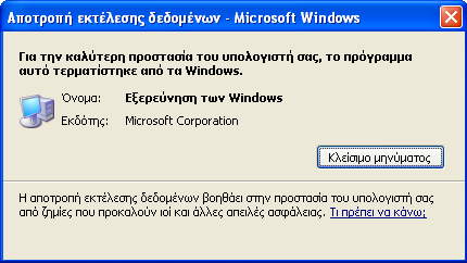dali13gr Δημοσ. 21 Μαρτίου 2005 Δημοσ. 21 Μαρτίου 2005 Πρέπει να απενεργοποιήσεις την Αποτροπή Εκτέλεσης Δεδομένων των XP. Φιλικά