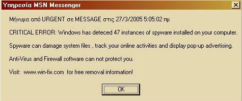 manosmad Δημοσ. 25 Μαρτίου 2005 Δημοσ. 25 Μαρτίου 2005 Spyware ειναι το οποιο προσπαθει να εγκατασταθει στο συστημα σου. Μην ακολυθησεις τα link που σου δινει και να κανεις συχνα ελεγχους. Προτεινω Ad- aware http://www.lavasoft.com