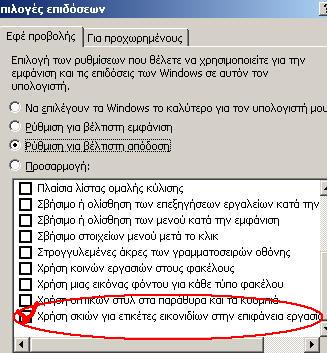 naturas Δημοσ. 10 Δεκεμβρίου 2005 Δημοσ. 10 Δεκεμβρίου 2005 An katalaba kala to problhma, kaneis deksi klik sto my computer, meta idiothtes,meta gia proxorhmenous pou leei, meta patas tis rithmiseis sto plaisio epidoseis kai sta efe probolhs tikareis to teleyteo diladi "xrhsh skiwn gia etiketes eikonidiwn sthn epifaneia ergasias" Sorry alla exw ellhnika windows alla ok elpizw na to breis