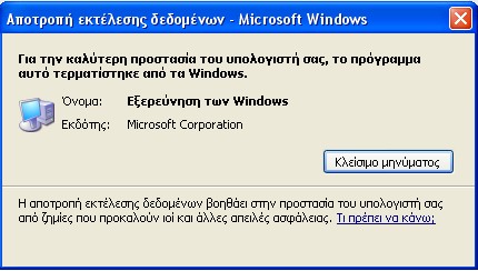 FILIM0N Δημοσ. 25 Φεβρουαρίου 2006 Δημοσ. 25 Φεβρουαρίου 2006 Xairetw. Exw ena problhma afotou phra kapoia arxeia apo ena filo me germanika XP. Opote mpainw se sugkekrimenous fakelous mou bgazei thn proeidopoihsh twn windows "Αποτροπή εκτέλεσης δεδομένων" kai kleinei ton explorer. Egw exw ellhnika XP (prin eixa kai egw germanika XP kai polla apo ta arxeia pou exw twra einai apo to palio mou PC sta germanika) kai exw scannarei to PC me diafora progs (gia virus, trojan, spyware ktl) alla to problhma paramenei. Mporw me kapoio tropo na apotrepsw thn emfanish autou tou mhnumatos? Kserei kapoios genika ti ftaiei? Einai kapoia asumbatothta?