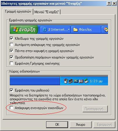ntg_net Δημοσ. 14 Μαρτίου 2006 Μέλος Δημοσ. 14 Μαρτίου 2006 sxetika me ti defteri erotisi sou deksi click sto taskbar-> properties-> kai des an einai checkarismeno to hide inactive icons' date=' an den einai to checkareis.Oso gia to: "Δεν εχω και δεν χρησιμοποιω και δεν προκειτε να χρησιμοποιεισω το SystemRestore." SystemRestore exeis. Einai sto accesories-> system tools. Twra an den to xrisimopoieis, afto einai allo kapelo, kai kata ti gnwmi mou kala kaneis. Aplws na kseroume ti leme.[/quote'] Για τα icons στο tray σε σειρα θελω να τα βαλω (οχι ενεργοποιηση ή απενεργοποιηση) Για το SystemRestore ξερω που βρισκεται αλλα εννοω οτι εκτος οτι δε το χρησιμοποιω , το εχω απενεργοποιημενο (και το απενεργοποιω και σε αλλα PC που περνανε απο τα χερια μου)