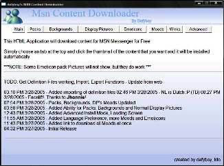 migel Δημοσ. 16 Μαρτίου 2006 Δημοσ. 16 Μαρτίου 2006 migel μπορείς να δώσεις ένα μικρό tutorial για το πώς δουλεύει το MSN Content Downloader? Πρέπει να βάλω κάποια συγκεκριμένα url? To MSN Content Installer δε λειτουργεί. thks Καλησπέρα . Δεν χρειάζεσαι κανένα tutorial , τα προγραμματάκια όπως θα δείς στις επισυναπτόμενες φώτο , έχουν 6 κουμπάκια το ένα και 8 το άλλο , με τα οποία κατεβάζεις τα ανάλογα που αναφέρει το καθένα . Τώρα εαν έχεις Ελληνικά Win δεν το βλέπω να τα βλέπεις Και μια φίλη που δοκίμασε με win gr δεν κατάφερε να κατεβάσει τίποτα. Δεν χρειάζεται να δώσεις κάποιο λινκ σε κανένα απο τα δύο προγράμματα . Φιλικά .