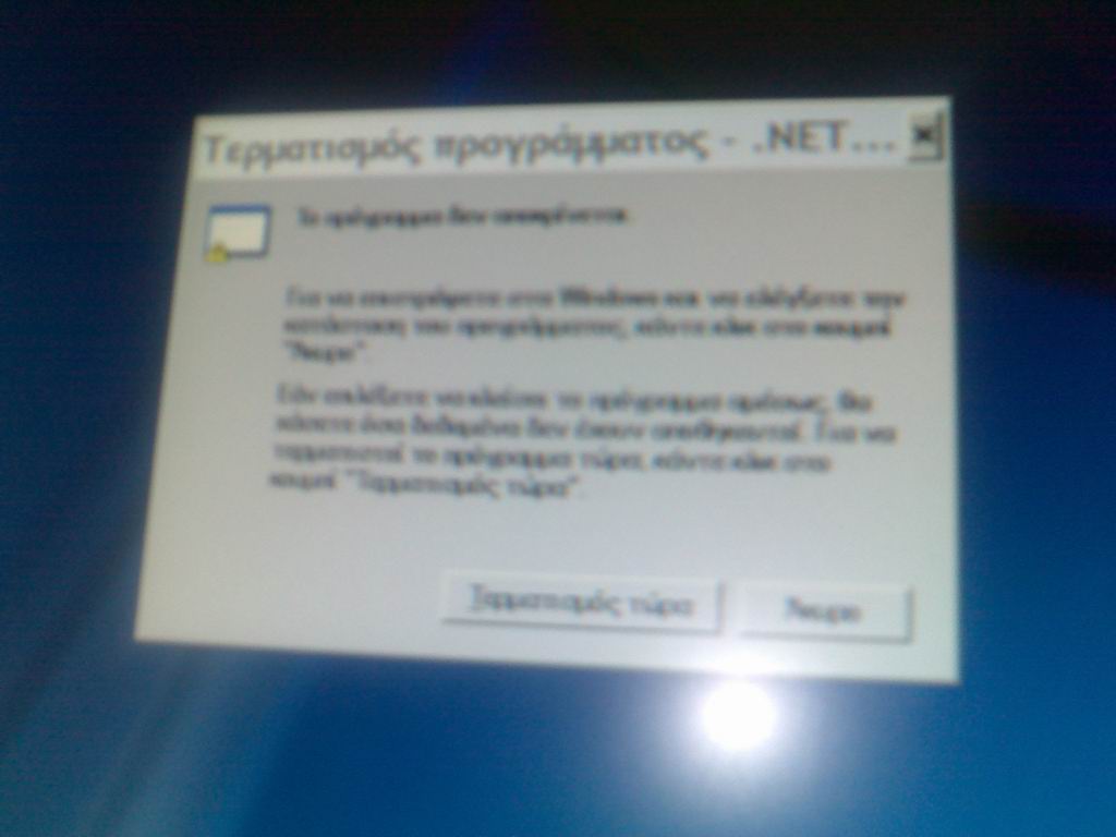 Γιάννης Platano Δημοσ. 4 Ιουνίου 2006 Δημοσ. 4 Ιουνίου 2006 Οταν ζηταω κατι τετοιο μου πεταει την παρακατω εικονα και αν δεν πατησω "τερματισμος" το pc δεν κλεινει.Καμμια ιδεα ???? Ευχαριστω.Συγνωμη για την κακη εικονα αλλα τα προγραμματα για print screen δεν δουλευουν και την τραβηξα με το κινητο.