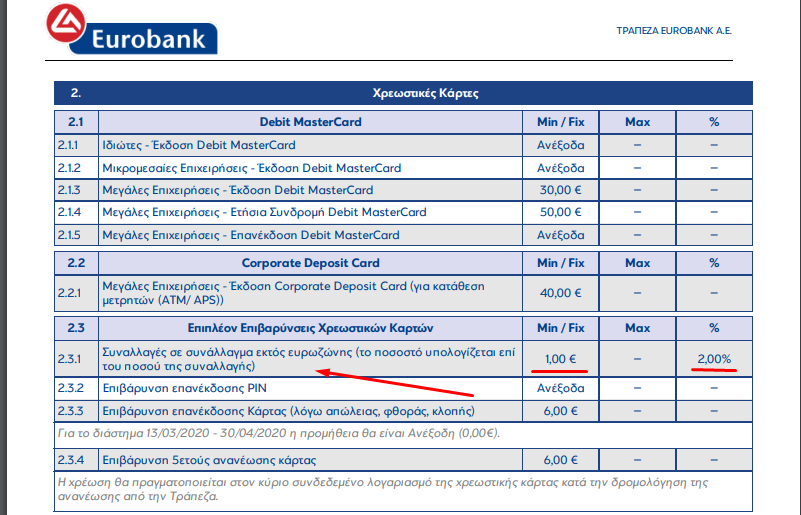 bilya Δημοσ. 20 Απριλίου 2020 Δημοσ. 20 Απριλίου 2020 6 λεπτά πριν, Lalakis1975 είπε Μπερδεύτηκα πιο πολύ τώρα, εγώ έβαλα μια κάρτα Master, τι γίνεται τώρα; θα πρεπει να τσεκαρεις ποσο θα σε χρεώνει η τράπεζά σου κ με τι ισοτιμία αν πληρώσεις σε ξένο νομισμα. Όλες οι τράπεζες έχουν αναλυτικό κατάλογο. πχ δες κατω τι χρεώνει η eurobank 27 λεπτά πριν, alfeios είπε δεν νομιζω οτι ισχυει γενικα αυτο δες το παράδειγμα της eurobank