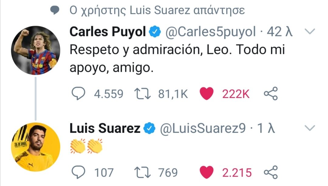 thetiesthatbind Δημοσ. 25 Αυγούστου 2020 Δημοσ. 25 Αυγούστου 2020 Μέσι σε Μπαρτσελόνα: «Φεύγω»! Η είδηση βόμβα που άπαντες στη Βαρκελώνη ήλπιζαν ότι δεν θα ερχόταν, έσκασε σα βόμβα. Ο Λιονέλ Μέσι φέρεται να έστειλε φαξ στη Μπαρτσελόνα, ανακοινώνοντάς της την απόφασή του. Και αυτή είναι ότι θα φύγει τώρα από το club. https://www.gazzetta.gr/football/la-liga/article/1507111/mesi-se-mpartselona-feygo?fbclid=IwAR2hwxLk3fedmEONQNjdtkfgYoSG5faC0SHym43NthmXDwdmZW2TcBcpSvQ CONFIRMED: The club confirms that it has received a bureaufax from Messi asking to accept the clause which would help him terminate his contract. The club says he had until June 10 to terminate the contract and that it is in the hands of the legal services. 2