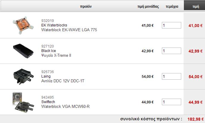 Xviper13 Δημοσ. 8 Ιουνίου 2007 Δημοσ. 8 Ιουνίου 2007 Lipon pare afta pou tha sou grapso parakato kai an den mineis ipeeeeerefxaristimenos tha katso na me.... min xerese plaka kano CPU WATERBLOCK: OCLabs Plexyblock B3 45.22? @ checkmate.gr WATERPUMP: Swiftech MCP655 12V 74.99? @ plaisio RADIATOR: Black Ice X-Treme II 42.99? @ plaisio RESERVOIR: TAPERAKI APO TO SPITI 0? @ Spiti SOLINES: aplous 1? to metro 1/2" RAKOR: 1/2" Afta gia arxi... argotera vazeis ena waterblock gia tin VGA sou kai to chipset... h antlia tis swiftech einai oti prepei gia ena full watercooling kai einai kai 12v... to cpu-waterblock einai apo eteria korifi sto xoro kai den kovei tin roh tou nerou katholou... to psigio episeis einai 2 x 120mm kai diplou paxous apo ta klasika pou episis den kovei katholou tin roh. Argotera an theliseis na valeis kai ta alla waterblock vale ta eksis... VGA WATERBLOCK: EK-FCX1900 69? @ plaisio CHIPSET WATERBLOCK: OCLabs Monoblock WBNKC2 40? @ checkmate.gr