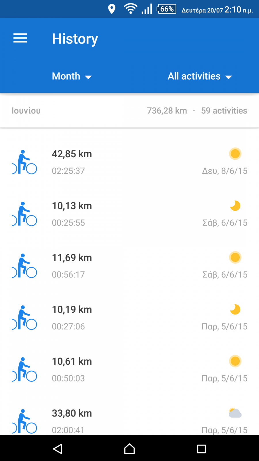 Mitsos_The_Great Δημοσ. 20 Ιουλίου 2015 Δημοσ. 20 Ιουλίου 2015 E, λοιπόν, ξέρεις τι; Πολύ καλά έκανες που αναφέρθηκες στις στάσεις, γιατί εμένα δεν πέρασαν στιγμή από το μυαλό μου! Ίσως επειδή για να κάνω στάση ή θα πρέπει να "οδηγώ" group ή να μιλάμε για αποστάσεις 150χλμ+. Οπότε ναι, οι στάσεις είναι ευπρόσδεκτες, αρκεί να μην είναι μεγάλες σε διάρκεια. Ο όρος "μεγάλες σε διάρκεια" δεν μπορεί να προσδιοριστεί επ' ακριβώς. Η διάρκεια διαφέρει από αθλούμενο σε αθλούμενο - άλλες "ανάγκες" για στάσεις έχω εγώ, άλλες εγώ. Αυτό που θα πρέπει να προσέξεις είναι να συνεχίζεις την ποδηλασία πριν να πέσουν οι παλμοί σου σε φυσιολογικά επίπεδα. Ο λόγος είναι ότι εάν δεν το κάνεις, ουσιαστικά χάνεις το "ρυθμό" που πιθανόν να είχες πετύχει και ουσιαστικά θα είναι σαν να κάνεις restart την ποδηλασία. Συν του ότι θα "κρυώσουν" οι μύες σου, οπότε ναι, φτου κι απ' την αρχή. Μήπως σου ξέφυγε ένα μηδενικό στα bold γράμματα; Από περιέργεια ρωτάω, γιατί τόσα χλμ με trekking των €260, θα έπρεπε αφενός μέχρι τώρα να σε πονάει όλο σου το είναι (μέση, πλάτη, αρθρώσεις κτλ) και αφετέρου να μην έχει μείνει καθόλου λίπος πάνω σου! Χαίρομαι που διάβασες το post μου, έστω και μετά από τόσο καιρό - δεν έχει σημασία, αρκεί να σου φανεί χρήσιμο. Εάν έχεις οποιαδήποτε απορία για τις προπονήσει κτλ, είμαι στη διάθεσή σου. Από τα λάθη που περιγράφεις, αυτό με το νερό είναι το σημαντικότερο. 250ml νερού "μονοκοπανιά" μετά από 30 λεπτά ποδηλασία, το μόνο που κάνουν είναι να αυξήσουν προσωρινά την εφίδρωσή σου (δίνοντάς σου το ψευδές αίσθημα ότι ξεδίψασες και δροσίστηκες), να σου φουσκώσουν το στομάχι και τίποτα άλλο. Όπως γράφω και στο post, προτίμησε ηλεκτρολύτες. Δεν μου ξέφυγε κανένα μηδενικό. Και όχι δε με πόνεσε τίποτα ποτέ όσο και να φαίνεται περίεργο. Λίπος υπάρχει αλλά λίγο (καμμία σχέση με πριν) και κάθε εβδομάδα βλέπω μια μικρή διαφορά στο σώμα μου. Το μόνο που μου την δίνει είναι η χαλάρωση του δέρματος γιατί πλέον από 118 κιλά περίπου είμαι 78 και όπως και να το κάνεις δεν μπορούσα να αποφύγω την χαλάρωση. Τώρα έχω μπει για τα καλά στο τρυπάκι της ποδηλασίας και της γυμναστικής στο σπίτι με βάρη και το σώμα μου αλλάζει και η χαλάρωση μαζεύει σιγά σιγά (θέλει υπομονή και καιρό να εξαφανιστεί η χαλάρωση αλλά ευτυχώς δεν το βάζω κάτω). Δες λίγο τα στατιστικά από το Runtastic Pro για τον μήνα Ιούνιο και ένα extra screenshot από μια μεγάλη πορεία 90+ χιλιομέτρων τον Απρίλιο. Μια χαρά ξηγήθηκε το χρέπι των 260ε αν και είχα κάποια προβληματάκια φθοράς (και λογικό αφού το ποδήλατο αυτό δεν είναι για τόσα km).