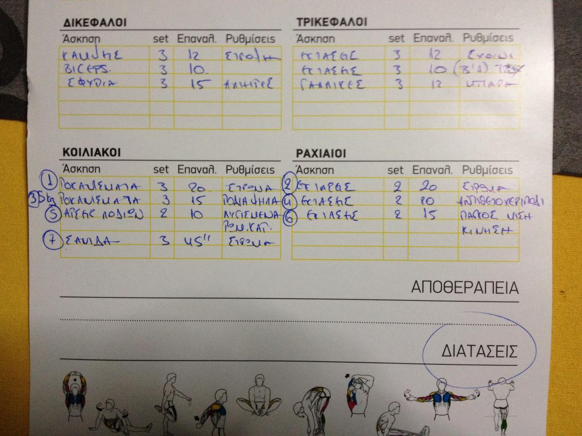 DDevil Δημοσ. 30 Νοεμβρίου 2016 Δημοσ. 30 Νοεμβρίου 2016 Σημερινη προπονηση : Ποδια / Δικέφαλοι. Για τα ποδια - Forward lunges. https://www.youtube.com/watch?v=pQEEKxBWbHg μπορει να έχω γερά ποδια που αντέχουν την πιεση αλλα επειδή δεν την ξέρω 100% την άσκηση θα κάνω το σχήμα για αρχάριους. - Dumbbell squats. https://www.youtube.com/watch?v=ARj3R7MCjUQ - Άρσεις γαμπών. https://www.youtube.com/watch?v=ug1PpXOSPrU (θα δοκιμάσω την στάση με την λόρδωση) Δεν θα αγγίξω καθολου μηχανήματα για ποδια πρέσες - τροχαλιες για εκτάσεις τετρακέφαλων και άλλα τέτοια. Θέλω ελευθερη προπονησουλα! Δικέφαλοι : - Κάμψεις αυτοσυγκέντρωσης. - "Σφυριά" με αλτήρες. Στηθος προς τα έξω - ώμοι πίσω και ελαφρώς λυγισμένα τα γονατα! - Κάμψεις δικεφάλων (κλασσική). Κοιλιακους - Ραχιαιους - διατάσεις. Στην αρχή 7 λεπτά διάδρομο 7-8 χλμ επειδή έχουμε και ποδια σήμερα. Η γυμναστρια που έβγαλε το πρόγραμμα σε έναν φιλο του έδωσε 4 ασκησεις κοιλιακών επι 20 επαναλήψεις. Ο τύπος είναι τελειως αρχάριος. Εγω κάνω 40-60 κάθε φορά και τέλος. Χάνεις το χρονο σου με τα πολλά ροκανίσματα πιστεύω. Οποτε κοιλιακους 4 σετ των 15. Ραχιαιους το ιδιο. Εκεινο που με εξιτάρει είναι ότι κάποιες είναι καινούργιες ασκήσεις και θελω να δω αμα τις έχω! Kαι τωρα που το ξανασκέφτομαι γιατι να κάνεις ένα συγκεκριμενο πρόγραμμα και να μην βλέπεις καμια καλή ασκηση και να προσπαθεις μετά να την κάνεις στο γυμναστηριο και οπου δυσκολευεσαι ρωτάς το γυμναστή. Ενώ το πρόγραμμα μπορει μετα από λιγο καιρο με τις ιδιες και τις ιδιες ασκησεις να ρουτινιάσει επικινδυνα.