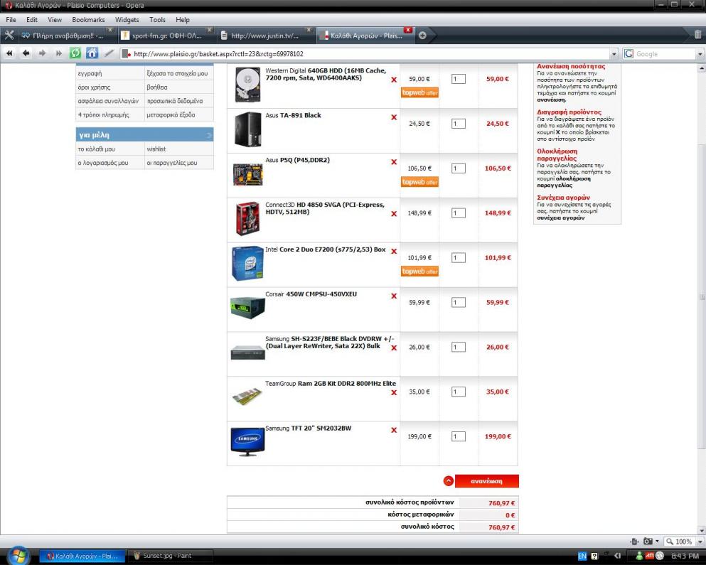 kid4computer Δημοσ. 27 Σεπτεμβρίου 2008 Δημοσ. 27 Σεπτεμβρίου 2008 Όπως εξηγώ θέλω να κάνω πλήρη αναβάθμιση για pc φίλου. Αν μπορείτε θα ήθελα να μου πείτε τον καλύτερο gaming συνδυασμό με 750Ε max!!! Περιλαμβανεται και οθόνη(μέχρι 19άρα, δεν του χωράει παραπάνω) και κουτί!!! Ευχαριστω εκ των προτέρων!!!