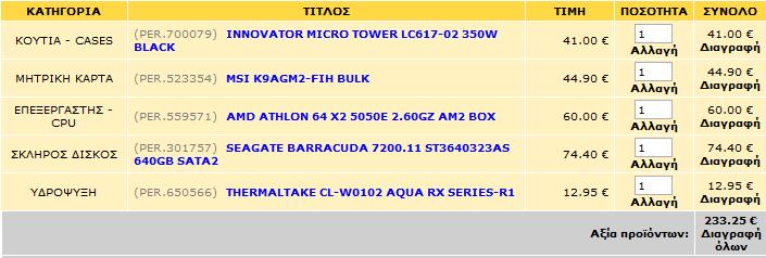 kkalop Δημοσ. 16 Δεκεμβρίου 2008 Δημοσ. 16 Δεκεμβρίου 2008 Ορίστε ένα μηχάνημα που την παλεύει άνετα 24/7 χωρίς προβλήματα να κάνει αρκετές διεργασίες ταυτόχρονα και βασικά πολύ επεκτάσιμο από θέμα σκληρών και μνήμης επίσης προτίμησα να βάλω καλούτσικη κάρτα γραφικών έτσι ώστε να μην έχεις πρόβλημα να παίζεις από κει οποιαδήποτε ταινία http://www.e-shop.gr/show_per.phtml?id=PER.700072 http://www.e-shop.gr/show_per.phtml?id=PER.522678 http://www.e-shop.gr/show_per.phtml?id=PER.558243 http://www.e-shop.gr/show_per.phtml?id=PER.554125 http://www.e-shop.gr/show_per.phtml?id=PER.510646 http://www.e-shop.gr/show_per.phtml?id=PER.303709