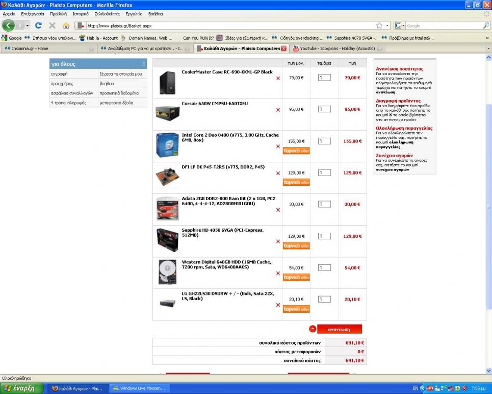 freestyoler93 Δημοσ. 19 Ιανουαρίου 2009 Δημοσ. 19 Ιανουαρίου 2009 λοιπον παρε μια συνθεση και απο μενα...σου προτεινω να παρεις το pc απο πλαισιο λογω του after sales.. thiki: http://www.plaisio.gr/product.aspx?product=1134663&catalog=20&category=69977695&MSCSProfile=DCCDF22EB27065BE6D1C166B2ADF9B3B6A00EC7D68325E4D7DCCE9809437A0A8F8C32DF2B5F7AC754084015D41D5FA78F571182204945D159E15858609C50936921AC0C95B04976775F1F97C99CEC94289B811744F7FE64ECC243B220BAB4CCBF25847709C2DA1CE7D86960F25C19C30CBC31318D9C598E0AF91C5431C893384 psu: http://www.plaisio.gr/product.aspx?product=1019325&page=2&category=69977705&catalog=20&MSCSProfile=DCCDF22EB27065BE873E77100669B211A924D0B48FAC20EC8A4F1B472333E5B6113337165B08129894BF81363043FDC2D4CCC3A643129E2246432872391AA733A95FE75CE93664C54E87759E9BB59E0C9A2DEDE235CEB3F55D5559E8188287BF05F1C097C9FB4F39AC6E94AEC8FA5C14FF623C7D8ECCF793375BBC60AB7F78D5 cpu: http://www.plaisio.gr/product.aspx?product=1206982&page=2&category=69977713&catalog=20 mobo: http://www.plaisio.gr/product.aspx?product=1160818&HYMOTHERBOARDSOCKET=AM2%2b&category=69977721&catalog=20&MSCSProfile=DCCDF22EB27065BE08CD8A61273804FAB012E322F6313A3A42C7B3C9E9E570B41AFE00922EED454BD0BD7E6BEE7BFD54D689ECC2ABD1F0A984F89DC9D171C9FB3FF4A11F4D82596C71D12079B7F3C619B96728250629D710D602F203653C589B8EEC28DD60A3ECC22550A7AC590CAD893E01A8C00522C337259A2A421AEC4C0D ram:http://www.plaisio.gr/product.aspx?product=1206672&HYMNIMIMEGETHOS=2+x+2GB&category=69977727&catalog=20 vga: http://www.plaisio.gr/product.aspx?product=1165585&page=4&category=69977735&catalog=20 hdd: http://www.plaisio.gr/product.aspx?product=1043056&catalog=20&category=69977741 dvd: http://www.plaisio.gr/product.aspx?product=1129864&catalog=20&category=69977751 συνολο:668,39 ευρω...πιστευω πως ειναι ενα απτα καλα mainstream system..